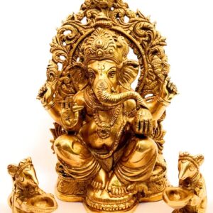 Brass Ganesha with Two Mushak Diya 22 Cm