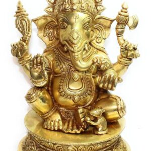 35 Cm Lord Ganesha Idol in Brass – Handcrafted Ganpati Murti for Puja Room & Gifts