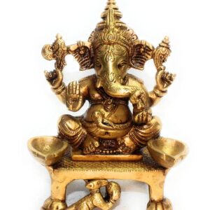 This finely crafted Brass Ganesha idol, standing 16 centimeters tall and weighing 1.35 kilograms, is a perfect blend of spiritual charm and traditional artistry. Made from high-quality solid brass, it showcases intricate detailing that beautifully captures Lord Ganesha’s divine features—his serene face, majestic crown, and symbolic posture. Known as the remover of obstacles and the harbinger of wisdom, prosperity, and good fortune, this idol is ideal for home temples, office desks, or as a meaningful gift for auspicious occasions. Its heavy and durable build ensures longevity, while its antique brass finish adds a touch of timeless elegance to any décor setting.This exquisite Brass Ganesha idol is a fine example of traditional Indian craftsmanship, crafted with intricate detailing and a polished antique finish. Lord Ganesha, revered as the remover of obstacles and the harbinger of wisdom and prosperity, is beautifully depicted in a serene and graceful posture. The rich golden hue of solid brass not only enhances its divine appeal but also ensures durability and long-lasting shine. Perfect for temples, pooja rooms, or as a decorative centerpiece, this idol adds an aura of spirituality and elegance to any space, making it an ideal choice for gifting on auspicious occasions or for personal devotion.