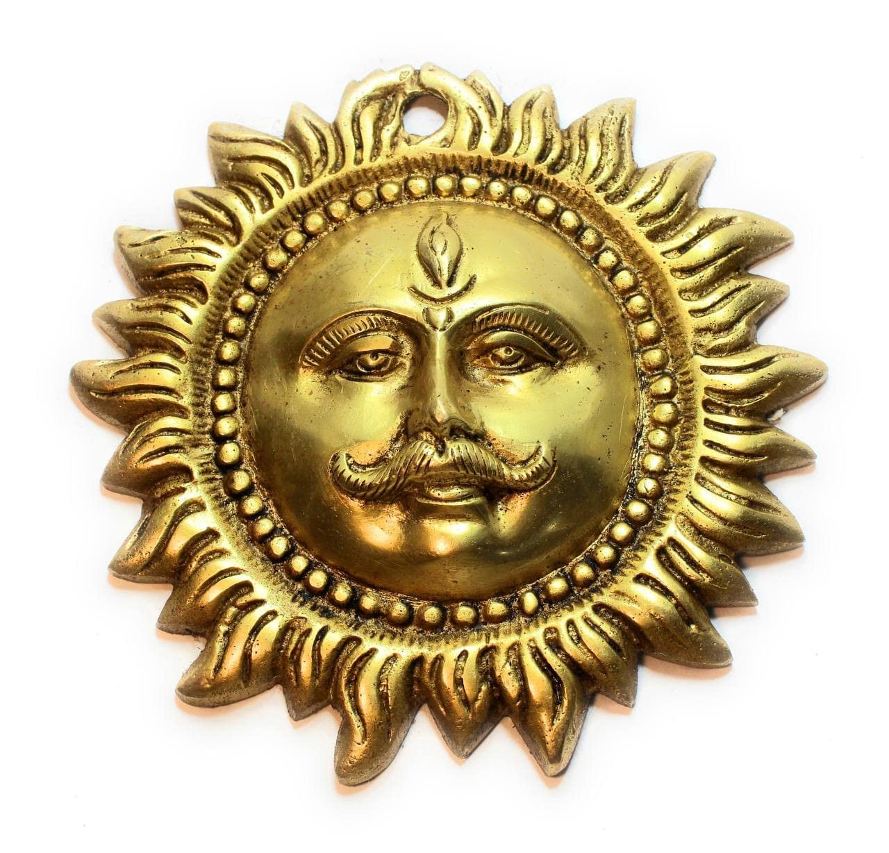 6 diameter Brass Surya Dev Designer Brass Idol of Sun Face Wall Hanging for Positivity at Home & Office