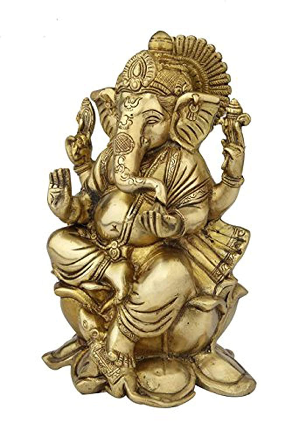 Brass Ganesha Sitting on Lotus Flower Base 25 Cm