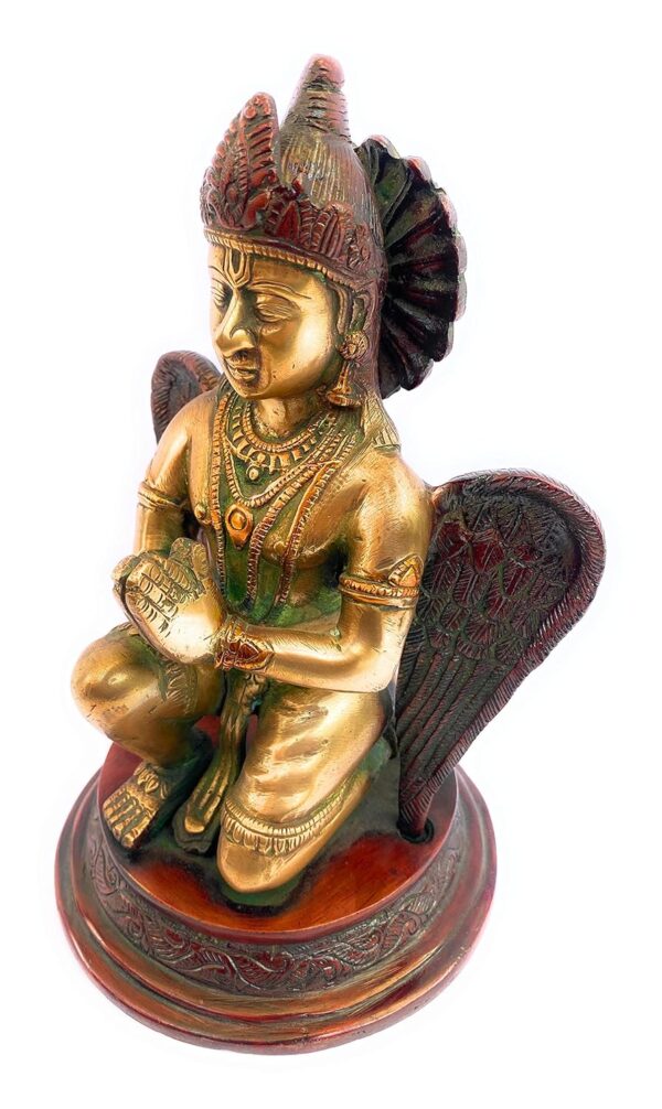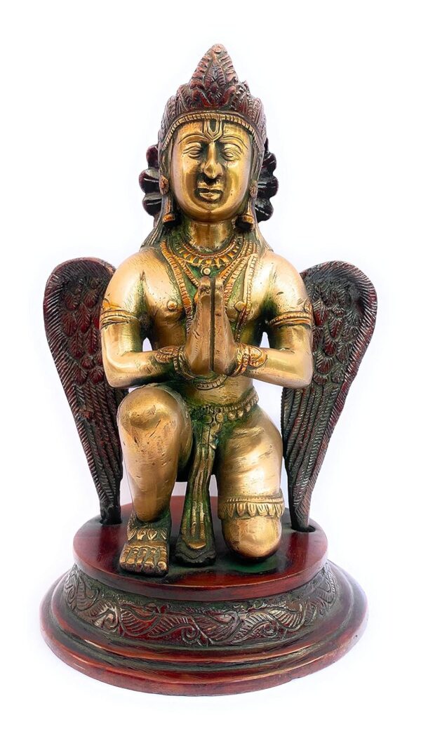 This elegant statue is not only a symbol of protection, courage, and devotion but also a perfect centerpiece for your living room, meditation space, or temple. Its robust design ensures lasting durability, while the polished brass finish adds a timeless, auspicious charm to any setting. Ideal as a spiritual gift or a cherished addition to your collection, this Garuda statue embodies both faith and artistry in one beautiful creation.