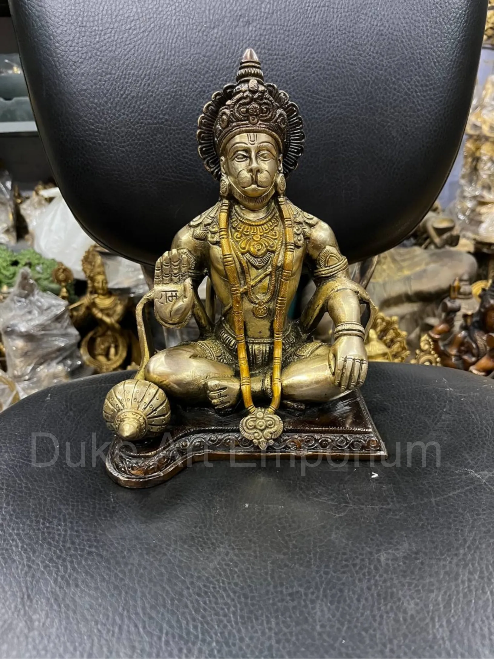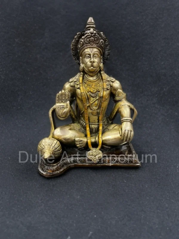 This intricately crafted Brass Hanuman Idol stands as a powerful symbol of strength, devotion, and protection. Measuring 10 inches in height, with a length of 6.5 inches and width of 5 inches, this idol is meticulously sculpted from high-quality brass, weighing approximately 4.8 kilograms. The idol captures Lord Hanuman in a divine and majestic pose, reflecting his unwavering loyalty and valor. Perfect for home temples, living spaces, or as a thoughtful spiritual gift, this piece brings a divine aura and sacred energy to any setting. Its detailed craftsmanship and antique brass finish make it a timeless addition to traditional and modern decor alike.