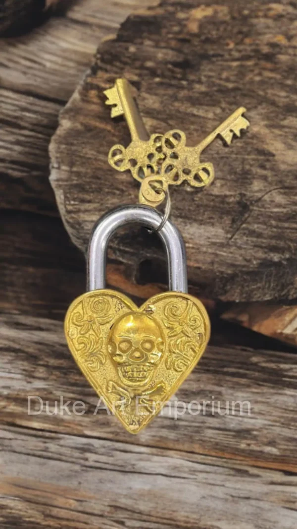 This intricately crafted brass piece, standing at 6 inches tall, is a beautiful blend of tradition and craftsmanship. Compact yet richly detailed, it makes for a perfect decorative item for your home, office, or as a unique gift. Its petite size allows it to fit easily into any setting while still catching the eye with its timeless appeal and handcrafted finish. heart lock.
