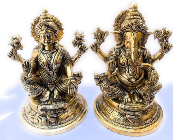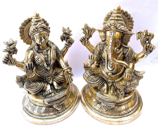 Divine Duo of Prosperity – 5 Inch Laxmi Ganesh Idol Graceful Laxmi Ganesh Brass Idol
