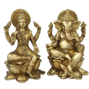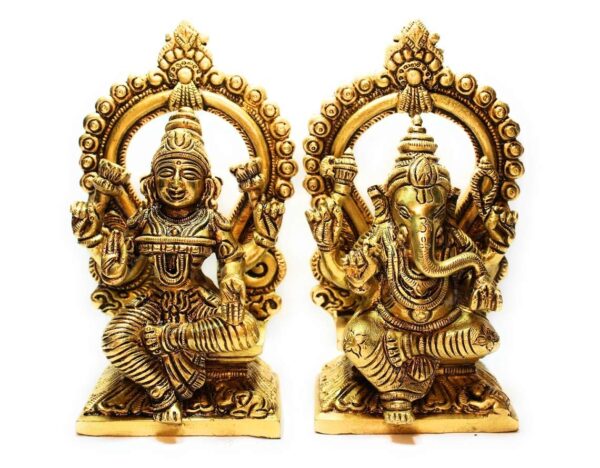 22 Cm Laxmi Ganeshji Set Idol for Showpiece -Brass Gold Finish
