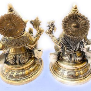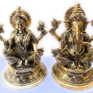 This exquisite Brass Laxmi Ganesh idol is a symbol of divine blessings, prosperity, and wisdom. Crafted with intricate detailing, it features Goddess Laxmi, the harbinger of wealth and abundance, alongside Lord Ganesha, the remover of obstacles and patron of wisdom. Standing 16 cm tall and weighing 2.1 kgs, this heavy brass idol showcases exceptional craftsmanship, making it a perfect centerpiece for your home temple, festive décor, or a thoughtful gift for auspicious occasions.