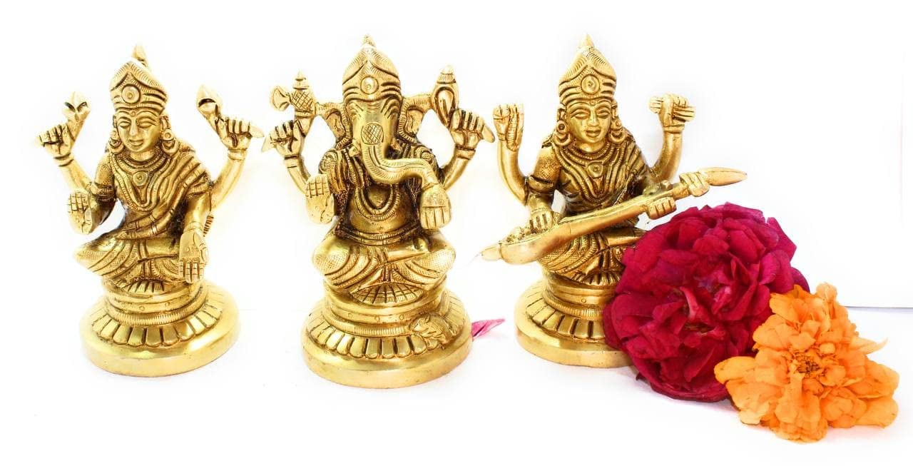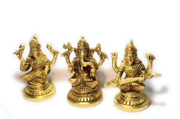 Brass Lakshmi Ganesha Saraswati Bhagwan 12 Cm