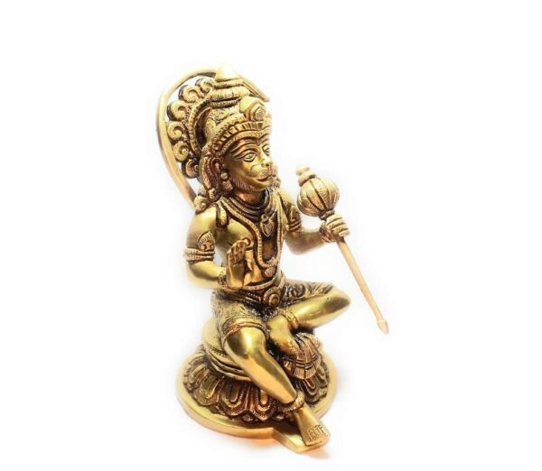 5 inches Hanuman Sitting with Gada on Shoulder Murti for Home Puja Idol Blessing Bajrangbali
