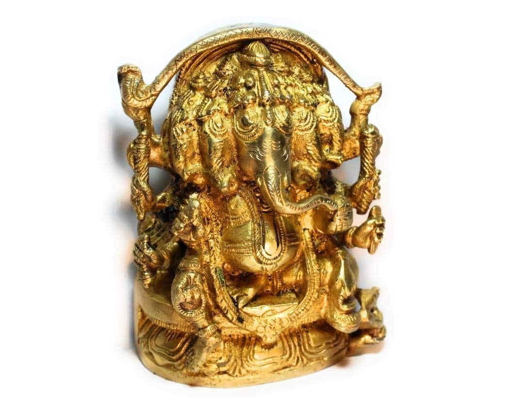 Brass Panchmukhi Ganesha Idol 15 cm | Handcrafted Ganesh Murti for Protection & Prosperity