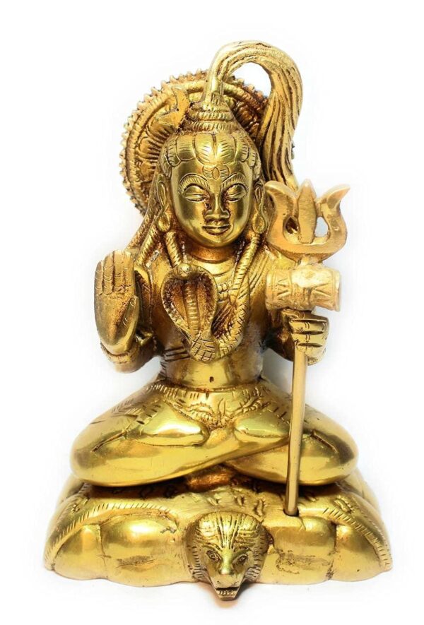 This beautifully crafted Brass Shiva idol stands at a height of 20 cm and weighs approximately 2.25 kgs, showcasing intricate detailing and masterful artisanship. Lord Shiva, the Supreme Being in Shaivism, is depicted in a serene yet powerful posture, radiating divine energy and tranquility. The idol captures traditional elements such as the third eye, crescent moon, flowing hair, and trident, all symbolic of Lord Shiva’s cosmic roles as creator, protector, and destroyer. Made from high-quality brass, this idol not only serves as a sacred addition to your home temple but also enhances the spiritual ambiance of your living space. Ideal for gifting on religious occasions or for personal devotion, it embodies grace, strength, and divine presence.