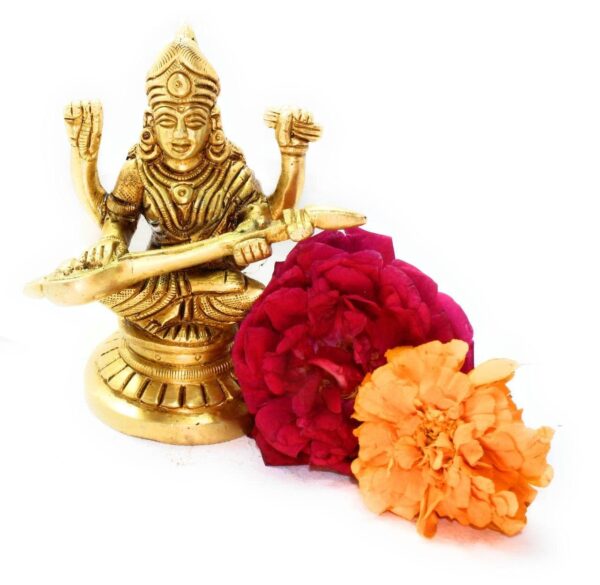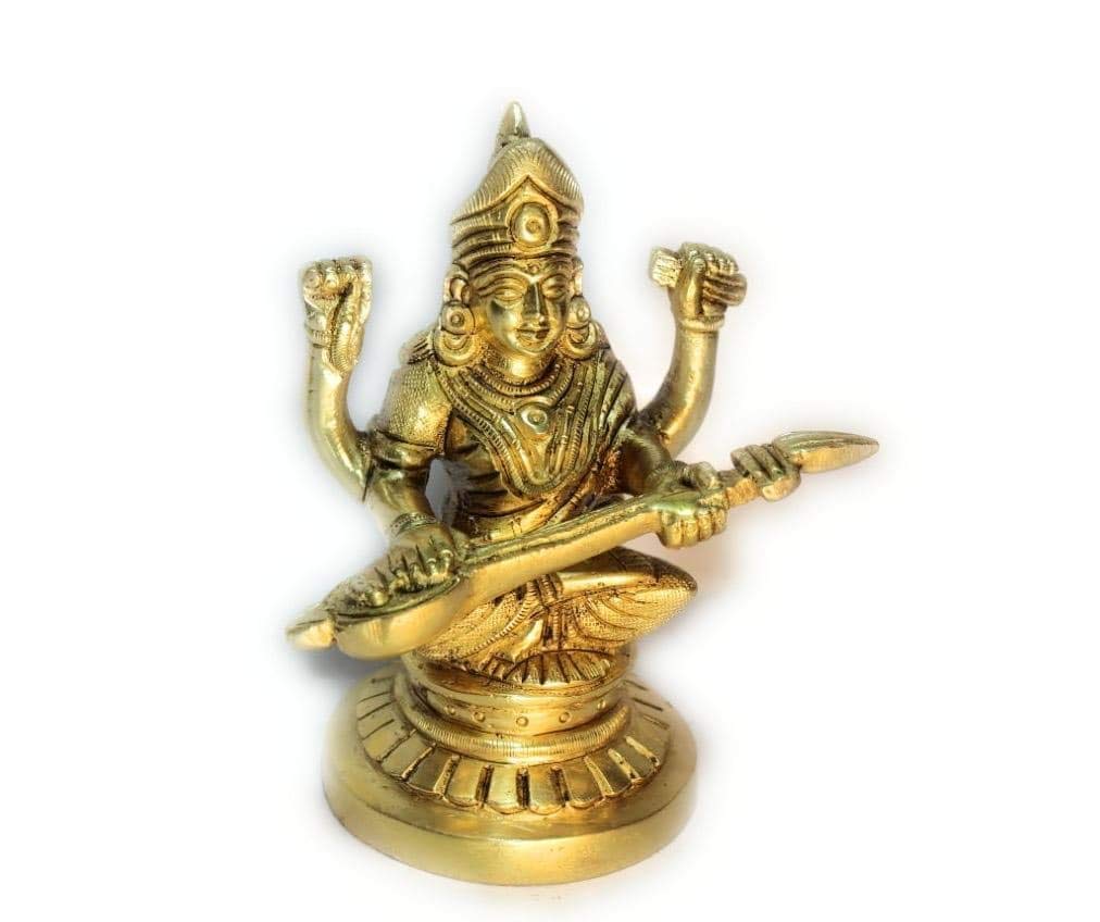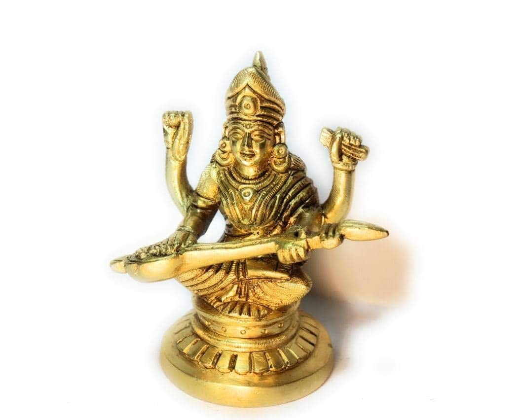 Brass Maa Saraswati Idol Sitting 12 cm | Goddess of Knowledge Murti for Home Decor & Pooja