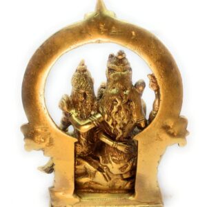 This exquisite Brass Shiv Parivar idol is a beautifully handcrafted piece depicting Lord Shiva, Goddess Parvati, and Lord Ganesha seated together in divine harmony, symbolizing peace, prosperity, and family unity. Measuring 9 cm in height and weighing 0.500 kgs, this compact yet intricate idol showcases fine detailing in traditional brass craftsmanship. The warm golden tone of brass enhances its divine aura, making it perfect for placing in your home temple, meditation space, or as a decorative piece that radiates spiritual energy. Ideal for gifting during festivals, housewarmings, or auspicious occasions, this idol serves as a timeless reminder of devotion and togetherness.