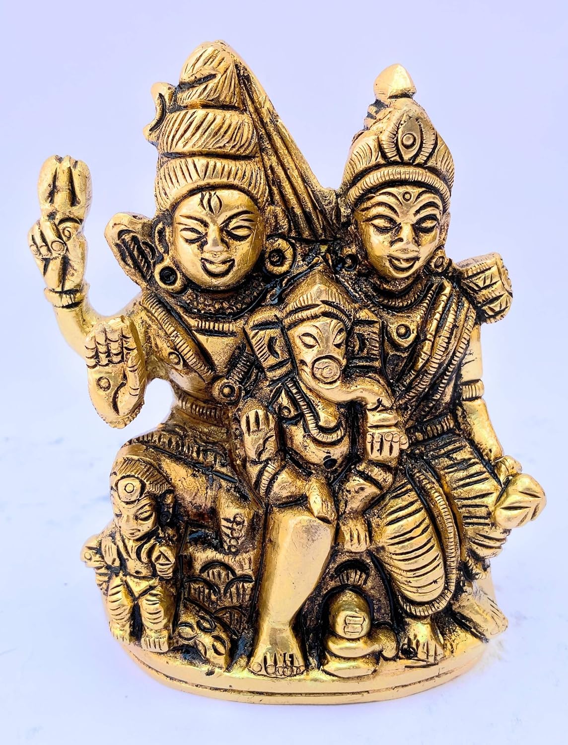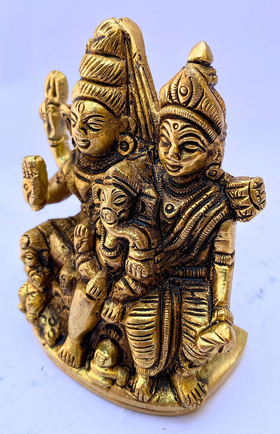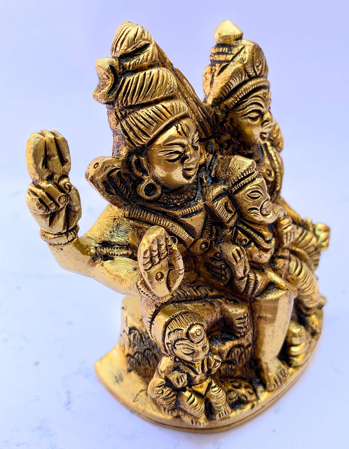 Divine Shiv Parivar Brass Idol – 10 Inches Sacred Family of Lord Shiva Shiv Parivar Statue