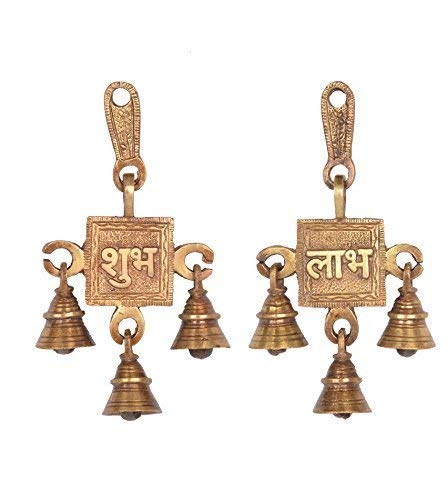 Brass Shubh Labh Hanging Bells Set 16 Cm