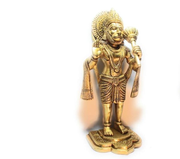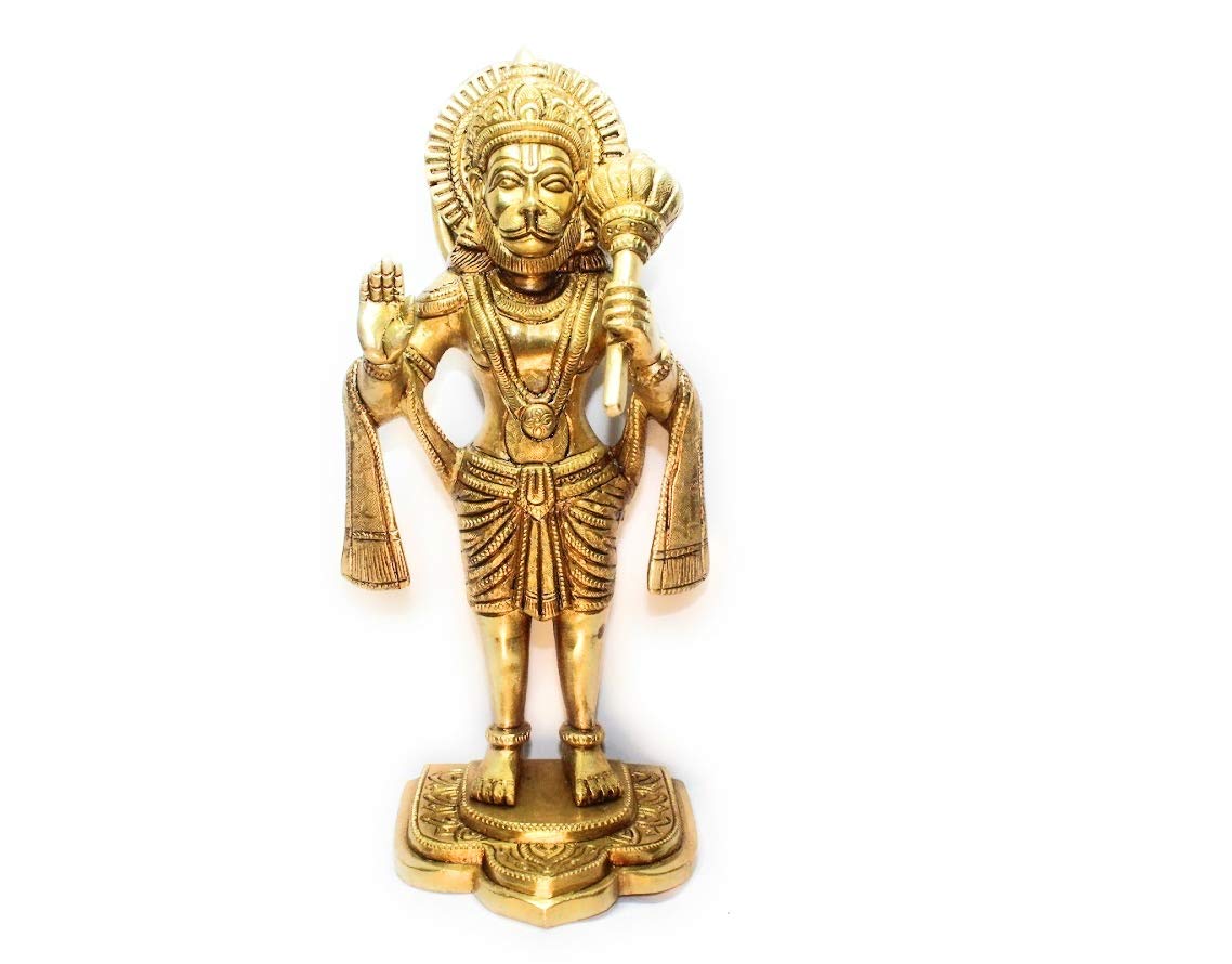 Brass Hanuman Idol – 10 Inches Valiant Form of Devotion Brass Lord Hanuman Statue