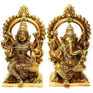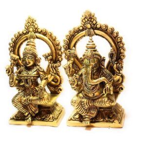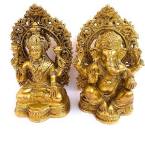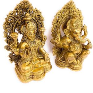 Divine Duo: Beautifully handcrafted brass idol of Goddess Laxmi and Lord Ganesh, symbolizing wealth, wisdom, and auspicious beginnings.