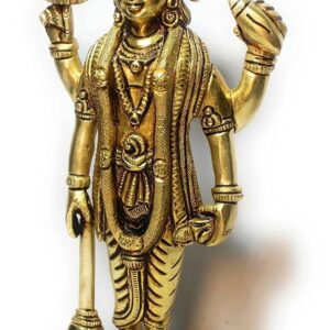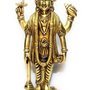 Brass Lord Bhagwan Vishnu Holding Club 16 Cm