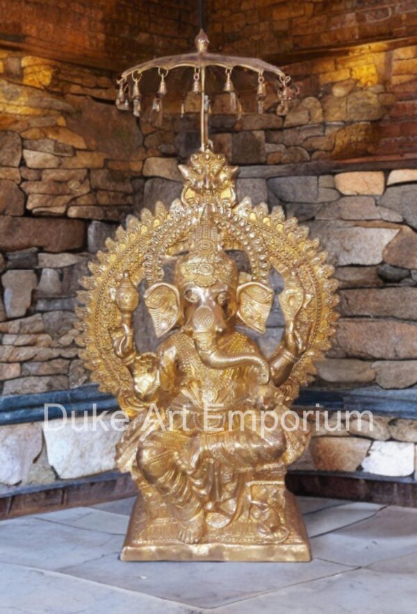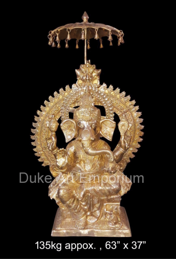 🛕 Imposing Presence: Towering at 63 inches height, length 37 inches this brass idol of Lord Ganesha makes a grand and divine statement.