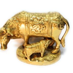 This beautifully handcrafted brass Cow and Calf (Gaye Bachda) idol is a symbol of nurturing love, protection, and divinity. With a height of 22 inches, length of 28 inches, and weighing 36.2 kgs, this majestic piece is perfect for adding a sacred aura to your home, temple, or office space. The intricate detailing on the cow’s body and the affectionate posture of the calf reflect expert craftsmanship and devotion. Ideal for gifting or enhancing your décor with a touch of traditional Indian heritage.