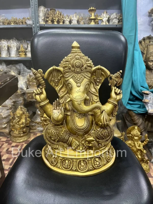 ✨ Majestic Brass Ganesha Idol – Height: 15.5″, Length: 12.5″, Width: 8.5″, Weight: 13.5 kg