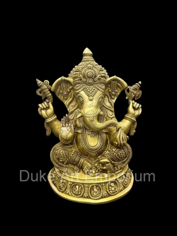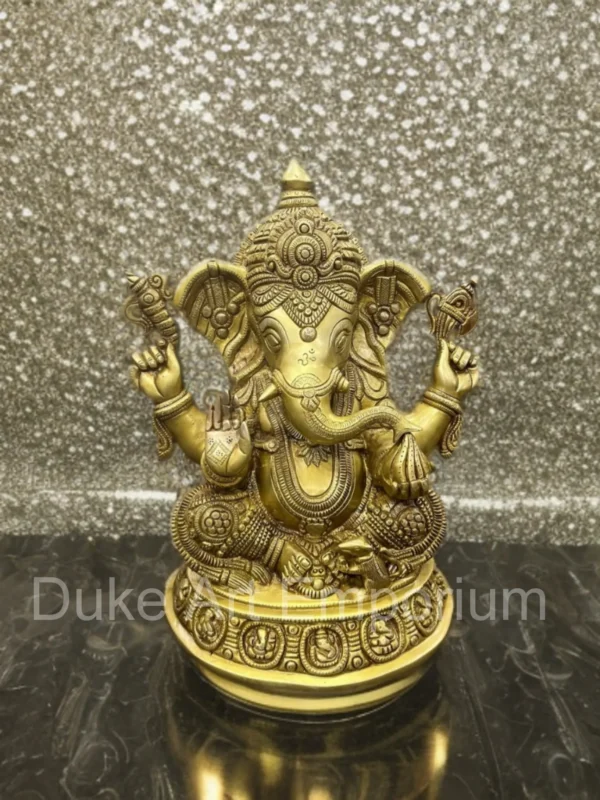 Majestic Brass Ganesha Idol – 12 Inch Divine Grace Handcrafted Lord Ganesha in Pure Brass