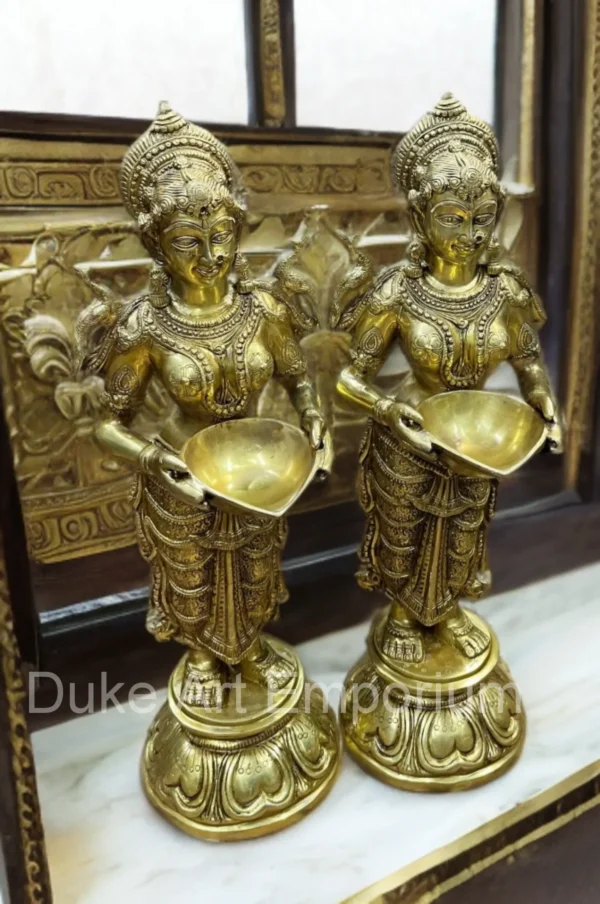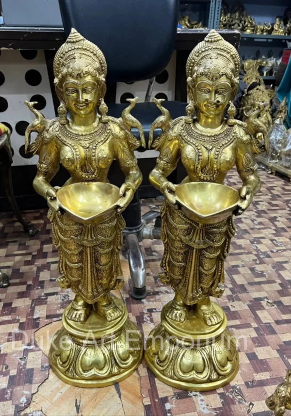 Majestic Deep Lakshmi Brass Pair – 29 Inches Grand Deepalakshmi Brass Statues – Traditional Oil Lamp Holders
