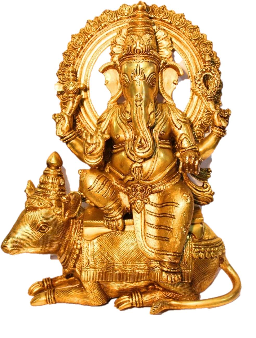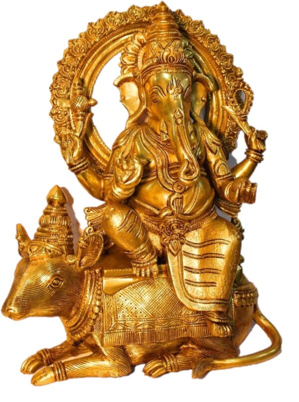 Majestic Ganesha on Mushak – 16 Inches Brass Idol Divine Lord Ganesha Riding Mushak