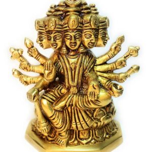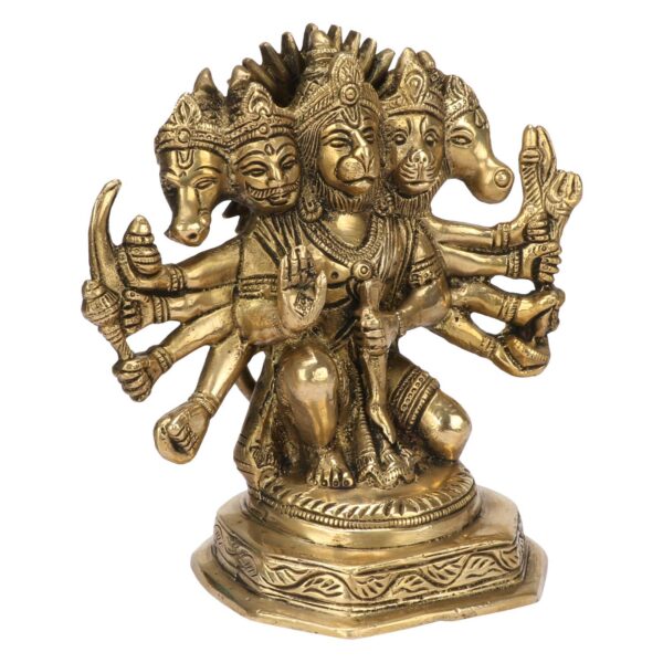 This beautifully crafted Brass Panchmukhi Hanuman idol is a symbol of immense strength, protection, and divine energy. Made with premium-quality brass, the idol showcases Lord Hanuman in his powerful five-faced (Panchmukhi) form, representing courage, wisdom, devotion, and victory over evil. With a height of 17.7 cm and a solid weight of 2.4 kgs, it carries a divine presence that makes it perfect for temples, pooja rooms, or as a spiritual centerpiece in your home. Each intricate detail, from the expressions of the five faces to the finely designed ornaments and posture, reflects expert craftsmanship and devotion. Placing this idol is believed to ward off negative energies, bring prosperity, and bestow strength and protection to the devotee. This Panchmukhi Hanuman idol is not just a spiritual artifact but also a piece of art that adds grace and positivity to any space.
