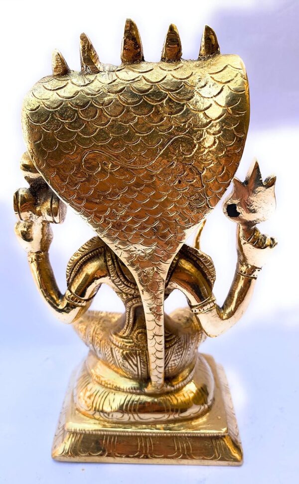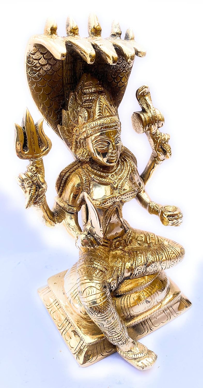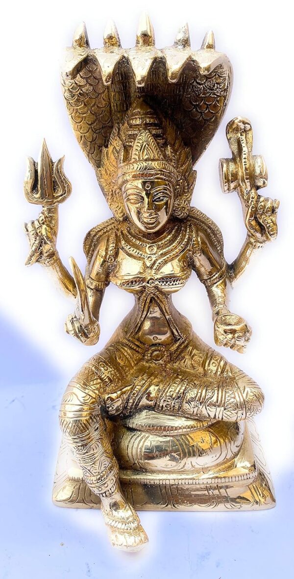 This exquisite Brass Santoshi Maa idol on Shesh Naag is a stunning representation of divinity, devotion, and craftsmanship. Standing at a height of 19.5 cm and weighing 2.05 kgs, this idol captures the serene and compassionate expression of Santoshi Maa seated gracefully upon the majestic Shesh Naag. The intricate detailing—from the Maa’s gentle facial features to the elaborate design of her attire and the lifelike depiction of the serpent—reflects the artistry and dedication of skilled artisans. Crafted from premium quality brass, the idol not only radiates a divine aura but also promises durability, making it ideal for worship, gifting, or as an elegant spiritual décor piece. Perfect for temples, pooja rooms, or sacred spaces, this piece brings blessings of contentment, protection, and prosperity into the home.