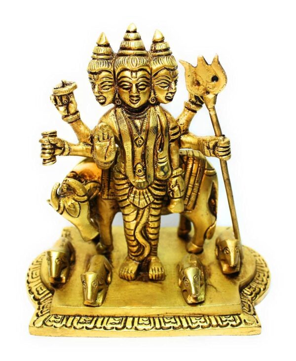 Shri Dattatreya Bhagwan Idol 12 cm | Brass Tridev Murti with Sacred Cow for Home Temple