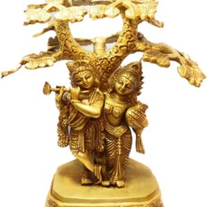 Brass Radha Krishna Under Tree/Radha Krishna Under The Tree of Life with Peacocks 29 Cm