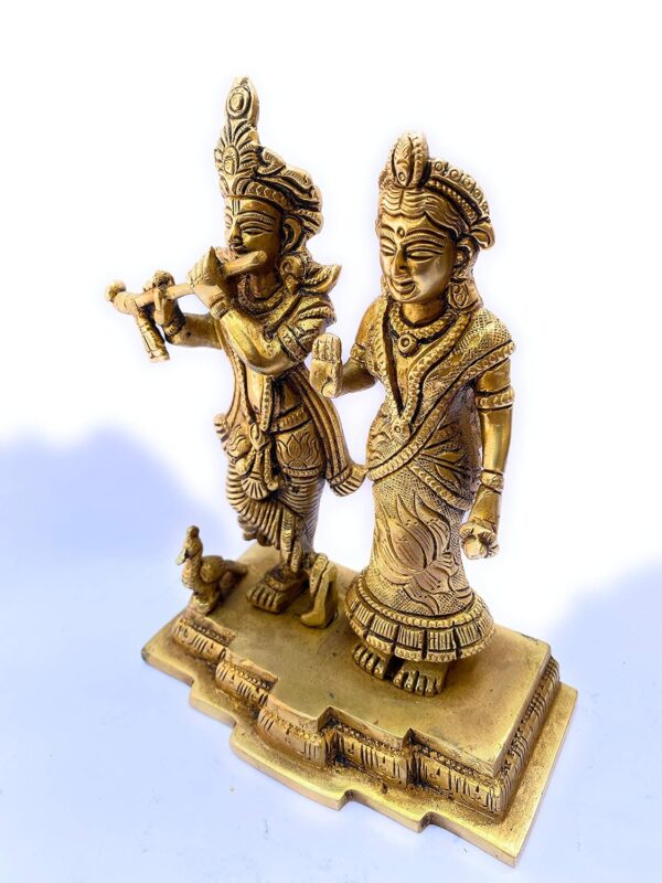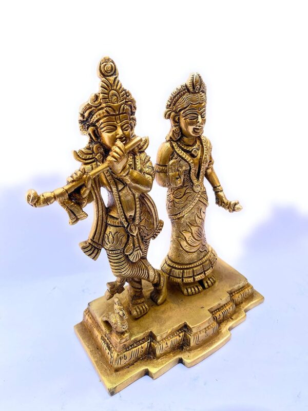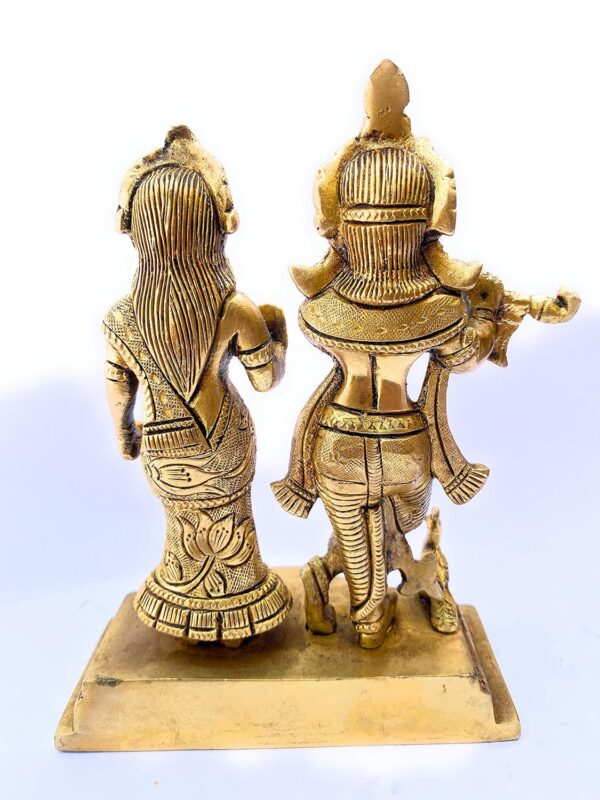 Handmade with precision, the smooth finish and detailed craftsmanship highlight the grace and serenity of Radha Krishna, making it a perfect symbol of love and devotion. The solid brass construction ensures durability and a lasting shine that ages beautifully over time.