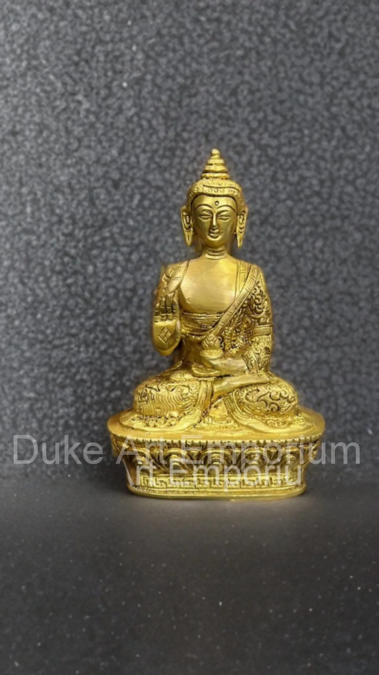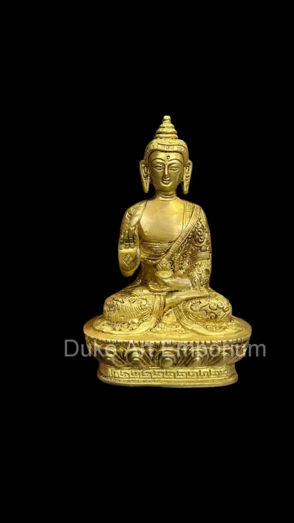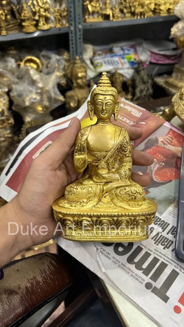 This exquisite Brass Buddha idol, standing at a height of 6 inches with a length and width of 3 inches each, and weighing 0.9 kgs, is a symbol of peace, enlightenment, and inner harmony. Expertly handcrafted with intricate detailing, this compact yet impactful sculpture radiates calmness and spiritual energy, making it a perfect addition to your home temple, meditation space, office, or as a thoughtful gift. The serene expression and graceful posture of the Buddha reflect traditional craftsmanship that brings timeless elegance and positive vibes to any setting. Made from durable brass, it promises lasting beauty and spiritual resonance.