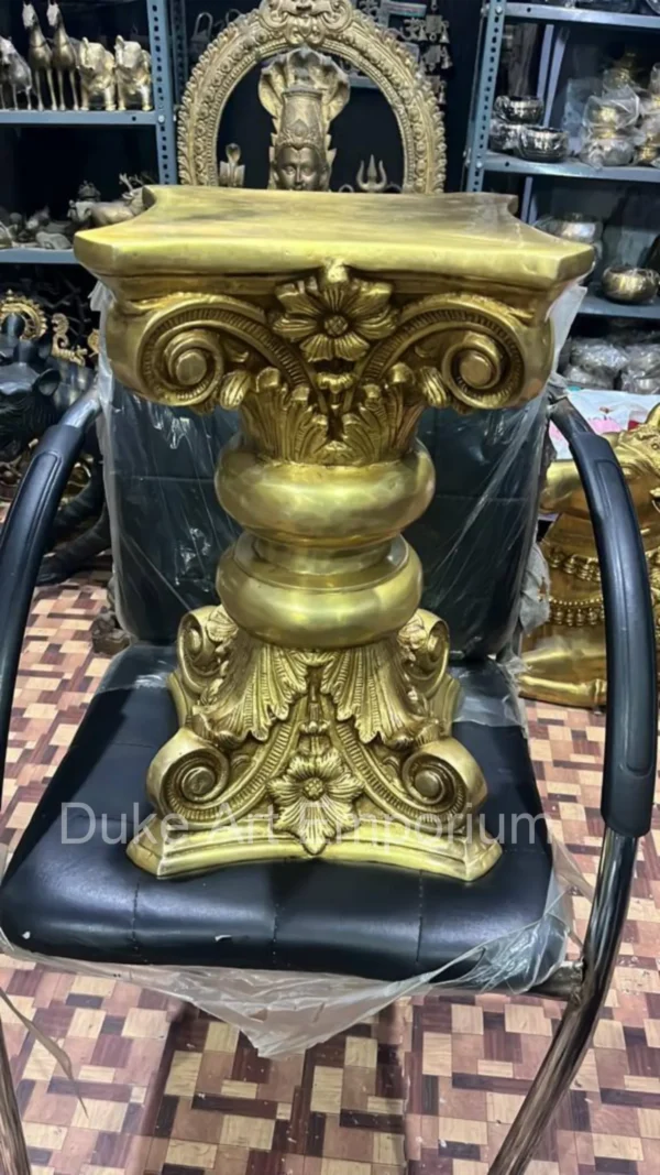 This elegant Brass Chowki is a stunning piece of traditional craftsmanship that adds a touch of royal charm to any space. With a height of 18 inches, length of 15 inches, and width of 15 inches, it is perfectly proportioned to serve as a pedestal for idols, lamps, or decorative artifacts. Weighing a solid 20 kilograms, this chowki is not only visually striking but also built for durability and stability. The intricate carvings and antique finish reflect the rich heritage of Indian artistry, making it an ideal centerpiece for your puja room, living space, or gallery. Whether used in temples or homes, this brass chowki enhances spiritual and aesthetic appeal with its grandeur and timeless elegance.